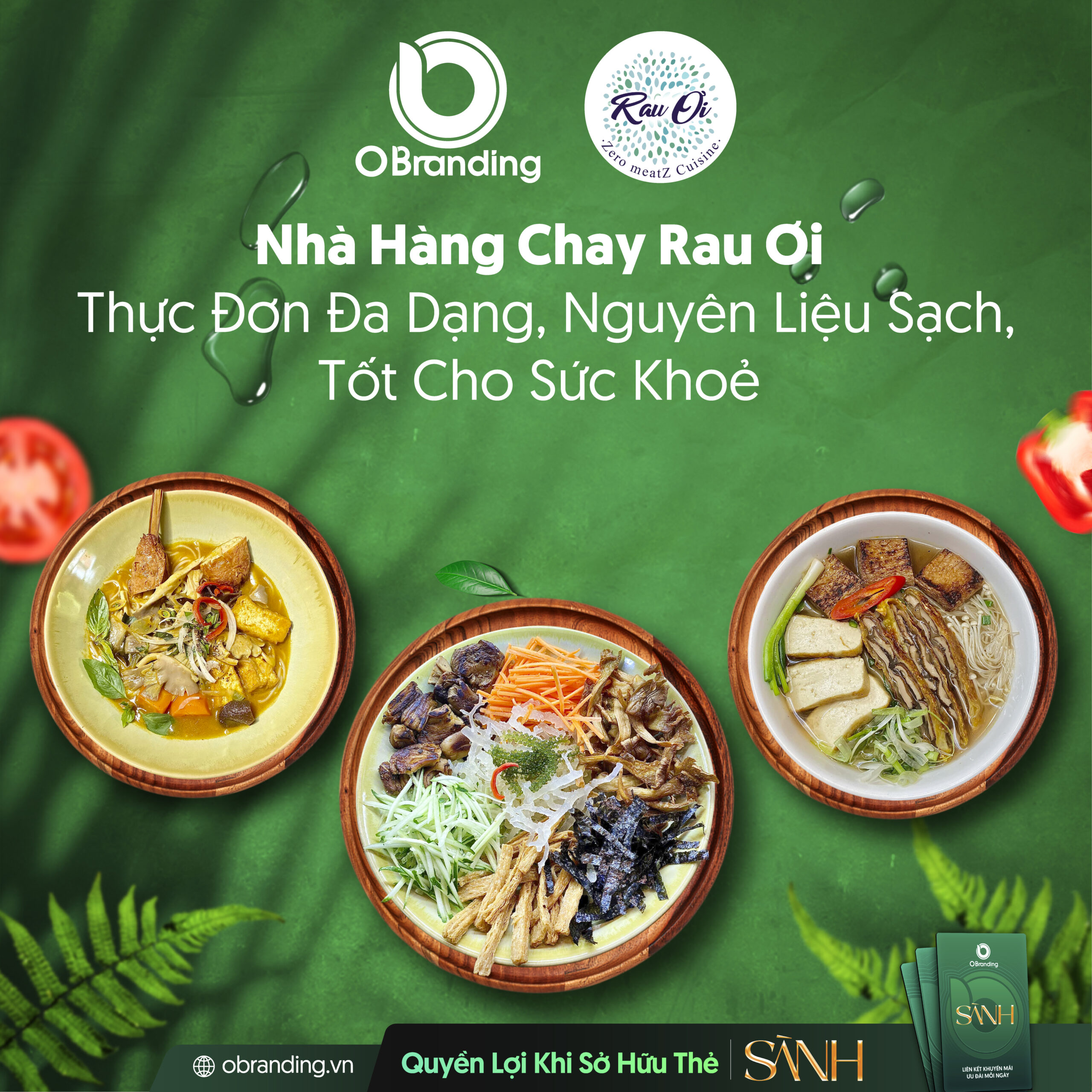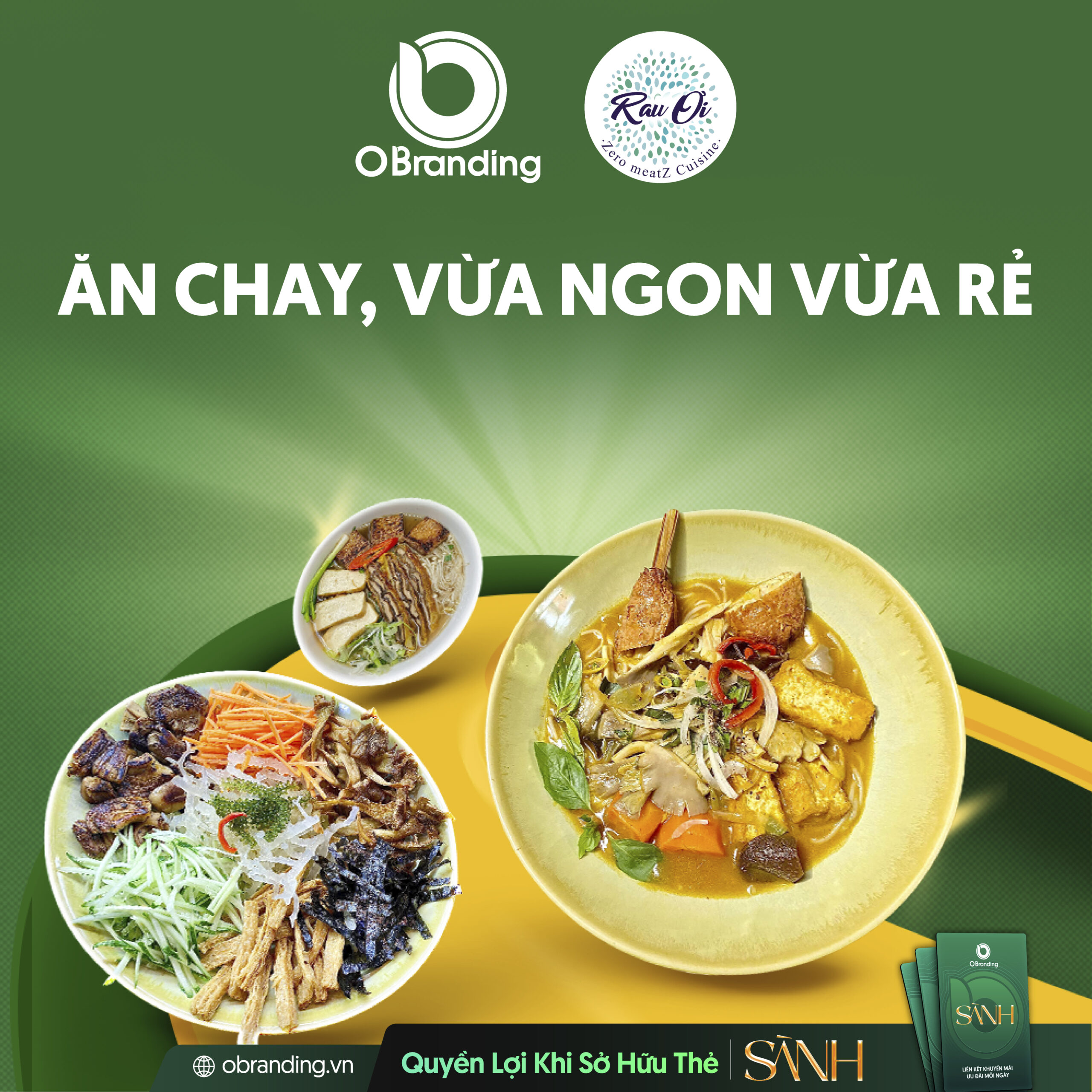 Sắm ngay “Thẻ Sành” để được GIẢM 10% cho hóa đơn dưới 1.000.000 VNĐ, GIẢM 15% cho hóa đơn từ 1.000.000 VNĐ trở lên trên tổng hoá đơn khi đến và thưởng thức ẩm thực xanh tại Nhà hàng Chay Rau Ơi.